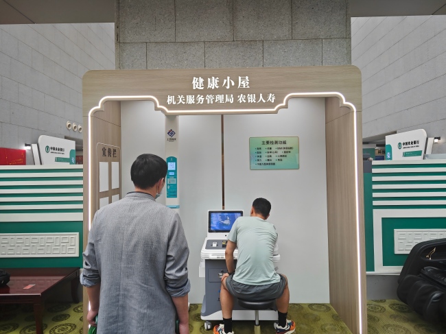 在農行總行大廈的北樓大廳,一座科技感十足的「健康小屋」悄然成為員工打卡熱點。這里沒有冗長的體檢排隊,只需刷身份證站立5分鐘,身高、體重、體脂、血壓等多項核心指標報告即時生成。支撐這一高效體驗的,正是上禾科技